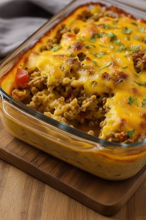 There’s something truly special about the kind of meal that can bring people together around the dinner table. Casseroles have always had a way of doing just that — simple, hearty, and full of flavor. For me, Cheesy Ground Beef and Rice Casserole is one of those dishes that instantly brings back warm family memories. The smell of seasoned ground beef simmering with onions, the comforting aroma of cheese melting in the oven, and the golden, bubbly top that makes everyone eager to dig in — it’s the definition of home-cooked comfort.