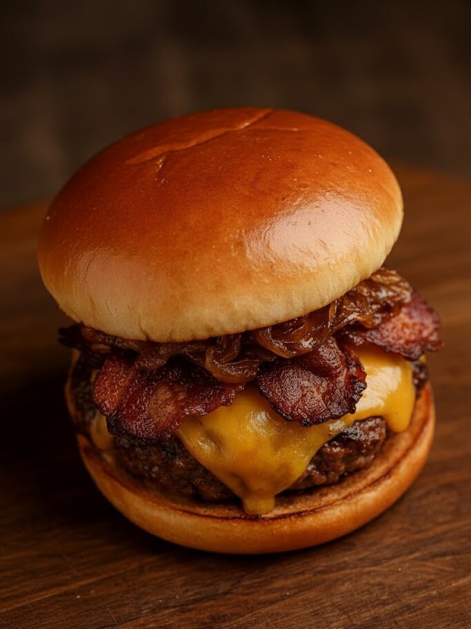 This recipe began as a weekend BBQ experiment. With leftover bourbon, a slab of bacon, and a craving for something indulgent, the first batch became an instant family favorite. Inspired by Southern-style cooking, where bold flavors meet smoky finishes, the Bourbon Bacon Cheeseburger is a tribute to good food, great friends, and backyard memories.