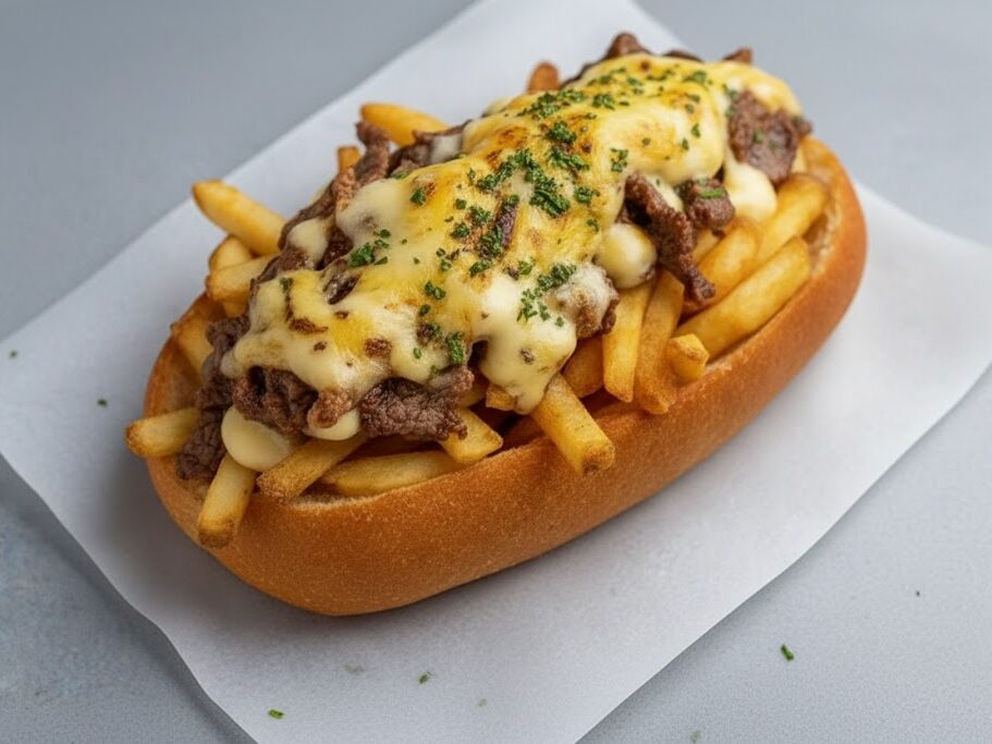 If you’re craving that hoagie experience, pile the fries, steak, and cheese inside a hoagie roll. It’s messy — but unbelievably good.